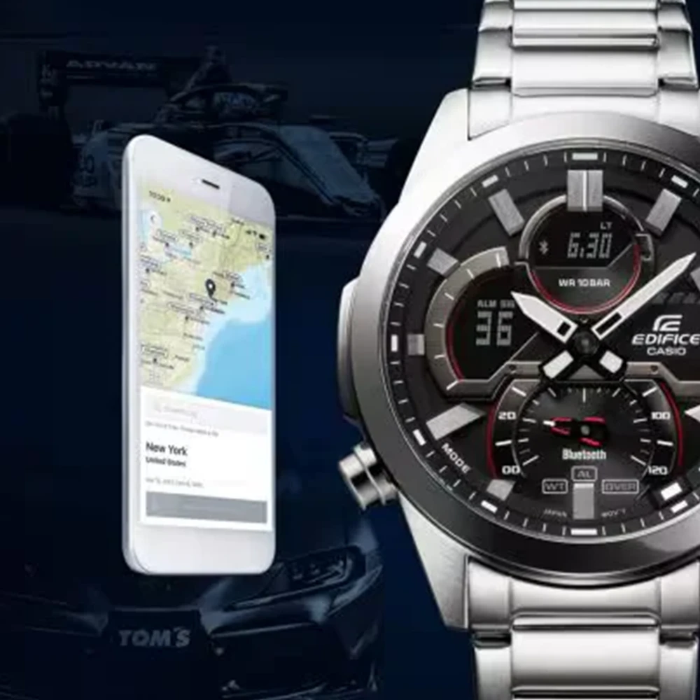 With this model, it’s a snap to sync with your smartphone via Bluetooth® and tap into the CASIO WATCHES app for full functionality at your fingertips. The app ensures button-free precision timekeeping when your phone is near. Developed to meet the needs of racing teams, the schedule timer syncs with your smartphone’s calendar app to transmit schedule items to the phone and display start and end times on the watch’s LCD.
